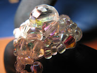 Eseguito rigorosamente a mano con filo di nylon questo ricco e prezioso anello ha al centro un grande cristallo A.B. ed un contorno di Swarovski cristal A.B., questo in foto ha misura 17. Che dire... é un vero spettacolo, per chi ama le trasparenze luminose.